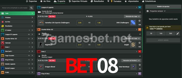 A aposta Bet08 oferece aos jogadores a experiência mais conveniente de apostas em eSports!